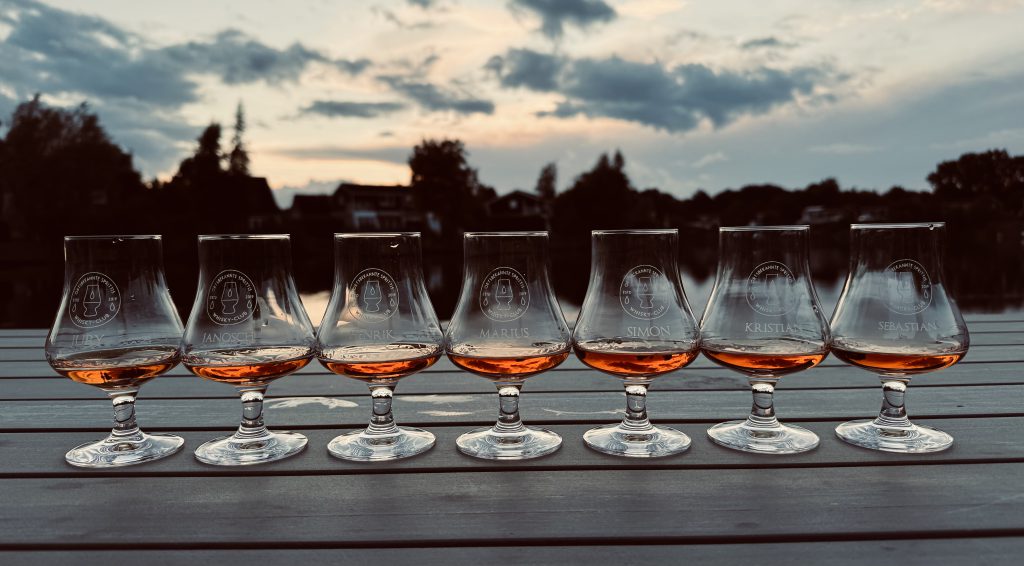 Wie schon das neunte Tasting, fand ca. 16 Monate später, erneut eine Verköstigung am Steg statt. Bei bestem Wetter und neuem Merch (weiße Shirts + Hoodys) wurden insg. 7 Whiskys unter den “Gaumen genommen”. Mit Hilfe eines Küchen-Korbs konnten die Gläser sicher, durch den mittlerweile geübten Kellner Marius, an den Steg transportiert werden. Weder das Wetter, noch die edlen Tropfen, haben uns diesen Tag im Stich gelassen.